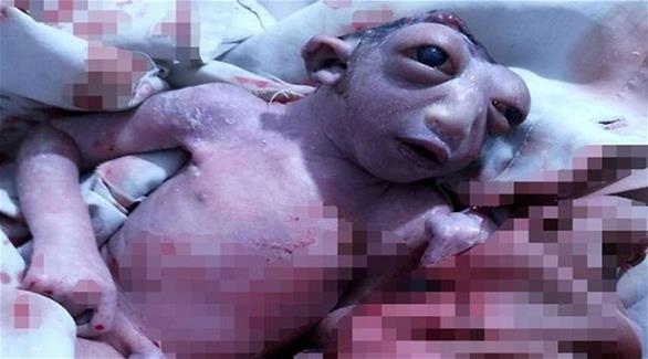 أذهلت طفلة هندية ولدت بنصف رأس وعينين ضخمتين بارزتين إلى الخارج،الأطباء بعد أن بقيت على قيد الحياة حوالي 48 ساعة بعد ولادتها.