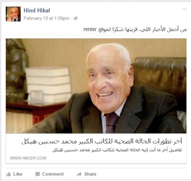 انا بقى كنت كاتب بوست على الجروب من شوية، بقول أنها مش حفيدته استنتاجا من ويكيبديا وتصريحاتها المتناقضة. بس مسحته عشان كلمتها وقالتي امسحه فأنا احترمت رغبتها، تقوم جريدة الوطن اللي واخدة منها تصريح بتأكيد الوفاة، تسرق البوست بتاعي وتنزل خبر جديد وبتكشف نصب هند هيكل وأنها مش حفيدته!!