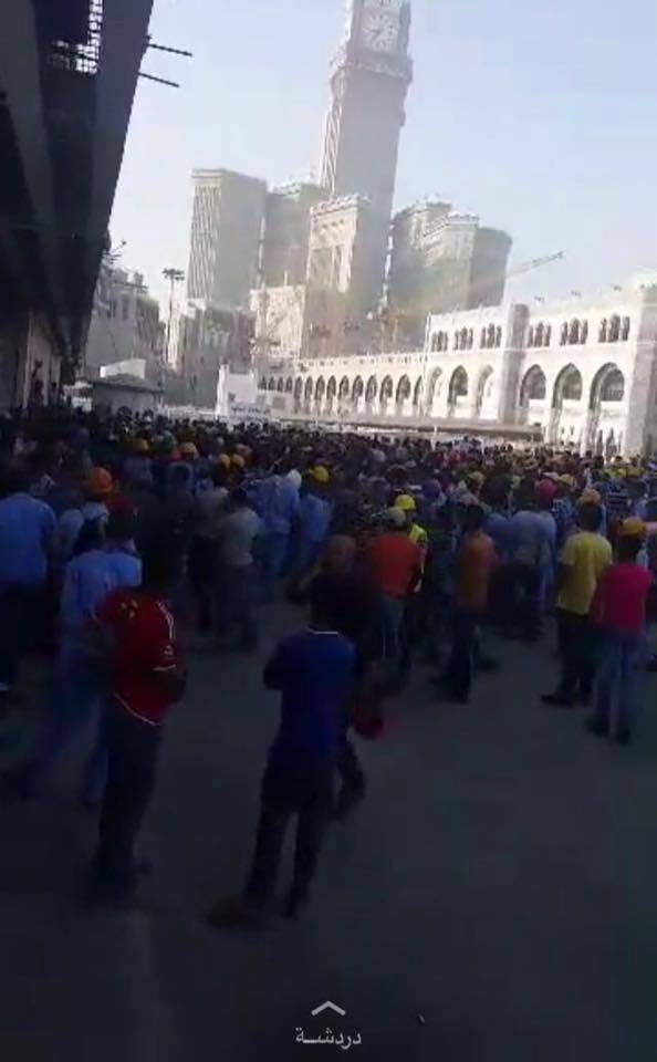 وحصل اضراب اليوم في جميع مشاريع مكة المكرمه ووقع إعتداء من العمال علي مدير مشروع التوسعه م/ هشام الشواربي مصري الجنسية لأنه انسان غير مسئول ، ويقوم بإطلاق تصريحات مستفزة علي غرار مفيش فلوس واللي عاجبه يقعد واللي مش عاجبه يستقيل