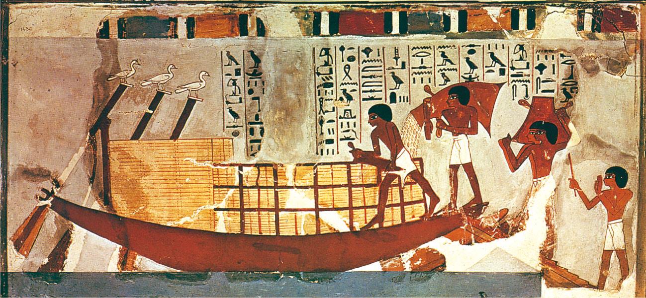 ازدهر فن الرسم والنقش البارز والغائر بمصر القديمة؛ كما تشهد بذلك جدران المقابر والمعابد. وقد تعامل الفنان مع الجدران باعتبارها أسطح رسم ونقش، وحاول استثمار كافة المساحات المتاحة. ولم يكن الرسم عمل فنان منفرد؛ لأن أعمال الرسم والنقش في مصر القديمة كانت تنفذ على ثلاث مراحل، وبإسهام عدة فئات من الفنانين: ولكل من هؤلاء مجال خبرته وتخصصه. وفي المرحلة الأولى، كانت ترسم الخطوط الرئيسية الأولية التي تعطي ملامح الشكل. ويبدأ التلوين في المرحلة الثانية؛ بداية بالمساحات الأعرض، والتقدم نحو تلوين تفاصيل الرسم. ثم تأتي بعد ذلك المرحلة الأخيرة، وفيها ترسم الخطوط الدقيقة التي تعطي التفاصيل.