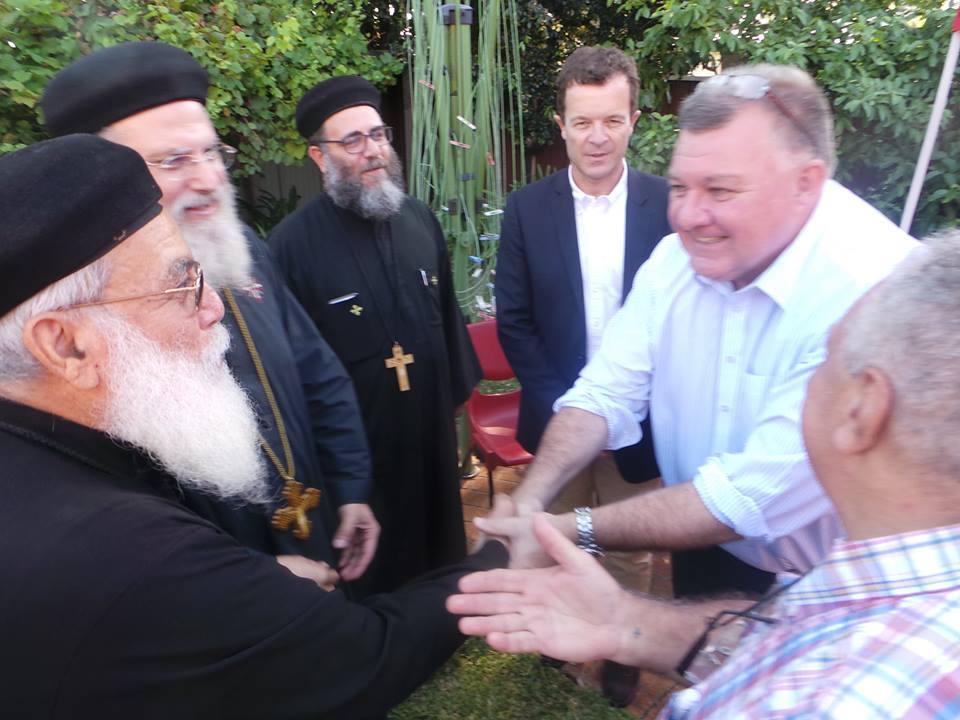 هذا وقد حضر اللقاء الذى دعى اليه السيد مجدى ميخائيل العضو المنتخب السابق بالمجلس المحلى لمدينة سازرلاند والرئيس السابق لنادى الروتارى والسيدة حرمة في منزلهما بعض من أعضاء الحكومات الفيدرالية والمحلية منهم السيد كريج كيلى عضو البرلمان الفيدرالي عن دائرة هيوز , القس فريد نايل عضو مجلس شيوخ الولاية , السيد مارك كورى نائب رئيس ممثل حكومة الولاية في البرلمان وعضو البرلمان عن دائرة أوتلى , ,السيد نيك قلدس نائب مفوضية بوليس الولاية والسيدة حرمة والسيد بول سيدراك عضو مجلس محلى بلدية روكديل كما حضر اللقاء كهنة كاتدرائية السيدة العذراء والشهيد مارمينا ببيكسلى والعديد من ابناء الجالية القبطية والمنظمات والهيئات القبطية .