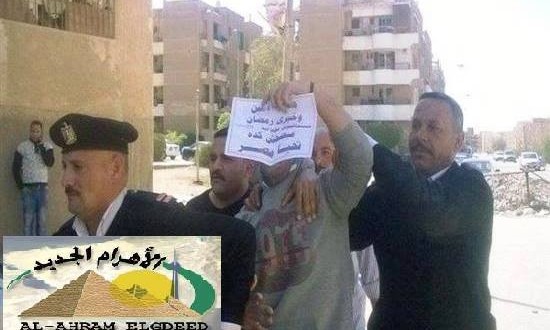 أثناء خروجه من محاكمته بجنح أكتوبر، لافتة مدونا عليها «خيري رمضان ومحمد الأمين مبيتحاكموش معايا ليه، ميصحش كدا.. تحيا مصر».