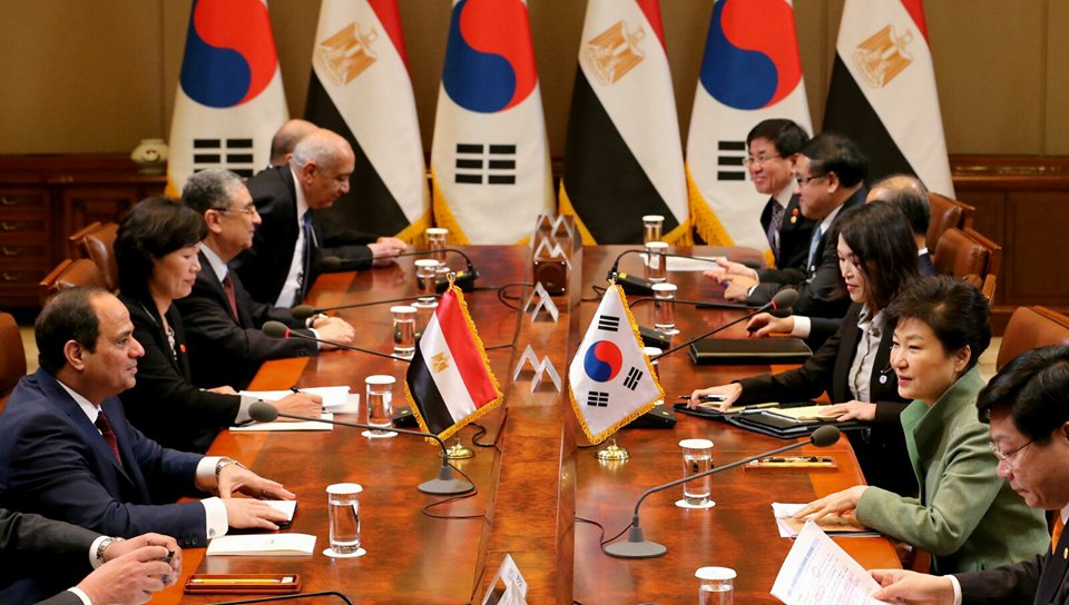 السيد كانج رئيس الجمعية الكورية المصرية للصداقة بأن الجمعية قامت بالترحيب الحار بالرئيس عبد الفتاح السيسى