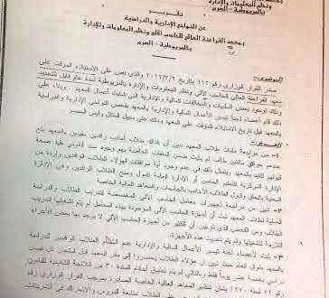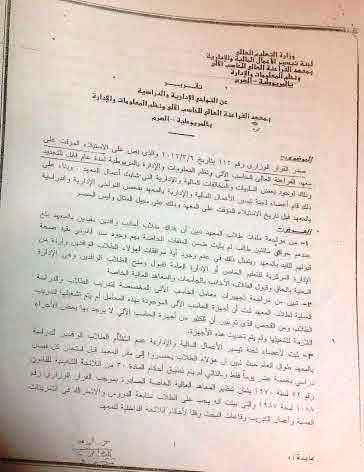 وبناء على ذلك فقد تم تكليف لجنة من العاملين بوزارة التعليم العالي لتسيير الشئون المالية والإدارية بالمعهد وذلك اعتبارا من 7/3/2012.