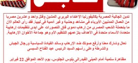 الأهرام الكندي: نشرت الجالية المصرية بيانا لها اعلنت فيه عن عزمها غدا الأحد 22 فبراير القيام بمظاهرة سلمية أمام المبني الفيدرالي بلوس انجلوس، المسيرة ستكون من الساعة الثالثة عصرا وحتي السادسة مساءا. وقد دعت الجالية المصرية الجميع للإنضمام للمظاهرة السلمية ورفع صوتهم، لمساندة القيادة السياسية ورجال الجيش والشرطة وعلي رأسهم …