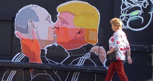 شوهد الرئيس الروسي فلاديمير بوتن والمرشح الجمهوري للرئاسة الأميركية دونالد ترامب وهما يقبلان بعضهما بشكل حميمي، لكن على جدار إحدى المطاعم التي تقدم اللحم المشوي بمدينة فيلنيوس في ليتوانيا. ورسم الفنان ماندوغاس بونانو، هذه اللوحة الجدارية التي انتشرت على وسائل التواصل الاجتماعي وجذبت وسائل الإعلام العالمية للاهتمام بها. فالجدارية تماثل …