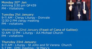 أشرف حلمى يتوجه يوم الاثنين القادم الموافق ٢٠ يناير الحبر الجليل نيافة الانبا تادرس مطران بورسعيد والنائب البابوى لايبارشية سيدنى وتوابعها الى مدينة ملبورن يلتقى فيها شعب كنائسها وذلك أثناء زيارة لاستراليا التى تستمر حتى يوم الخميس الموافق ١٣ فبراير القادم , وقد أعدت إيبارشية ملبورن برنامج للحبر الجليل فى …
