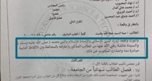 قام مجلس تأديب كلية الطب جامعة مصر للعلوم والتكنولوجيا بفصل الطالب مينا السيد عطالله بخيت فصلا نهائيا من الكلية بزعم الإساءة للإسلام والسيدة عائشة! صفوت صدقى كتب على صفحته لا ندعو الى إزدراء أو إهانة العقائد ولكن إلى متى سيتم تطبيق القوانين باتجاه واحد فقط بل وفى أحيان كثيرة بالتلفيق …
