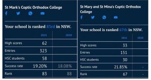 أشرف حلمى حققت المدارس القبطية الأرثوذكسية بولاية ساوث ويلز الأسترالية نتائج مشرفة للعام الدراسي المنصرم ٢٠٢١ ، جاء ذلك عقب الإعلان الرسمى صباح اليوم الخميس الموافق ٢٠ يناير لنتائج الشهادة الثانوية العامة ، وقد صنفت مدرستان قبطيتان من ثلاث مدارس قبطية فى الولاية ضمن أفضل ١٠٠ مدرسة ، وقد جاءت …
