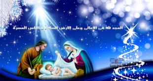 نهتئة بعيد الميلاد د. وجدى لوزا بذكري ميلاد المسيح افرحوا وبتلك المناسبة الجليله هللوا يا شعب ورواد الكنيسة انشدوا وفى مديح رب المجد لا تتقاعسوا بقلب قوى وبابتهاج رتلوا وبالناقوس “والتريانتوا” اعزفوا بأصوات مرتفعه رنموا وباجمل الأصوات سبحوا ***** ***** ***** ظهر الملاك لمريم ويوسف فاستبشروا بقدوم المخلص الذى قديما …