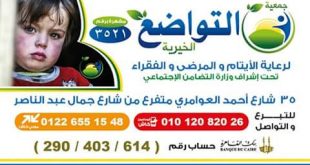 قام فريق العمل بجمعية التواضع بالإسكندرية بتوزيع الألعاب وكحك العيد , والعيدية على أطفال مستشفى سرطان الشاطبي ومستشفى الميرى ، استطاع القائمين على الجمعية رسم ابتسامة على وجوه الأطفال مع صباح أول يوم من أيام عيد الفطر المبارك