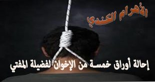متابعة / أمل فرج قررت محكمة الجنايات بالزقازيق إحالة أوراق 5 من أعضاء جماعة الإخوان الإرهابية إلى فضيلة المفتى لقيامهم بقتل والشروع فى قتل عدد من رجال الشرطة والانضمام لخلية إرهابية وترويع وتهديد المواطنين. صدر الحكم برئاسة المستشار محمد عبد الباسط امبابى وعضوية المستشارين محمد أحمد عبد الوهاب ووليد عبد …