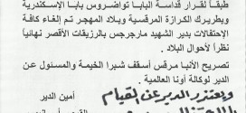 أكد الناشط القبطى المعروف نشأت عدلى قيام الأنبا مرقس اسقف شبرا الخيمة باجراء أتصال برهبان دير مارجرجس بالرازيقات متحديا كل اوامر الامن بإستقبال زوار الدير بدأ من يوم الخميس 29 10 وتخطيط الارض لنصب خيام المقيمين بدون اخذ اي اذن من الامن الذي منع الرهبان من تخطيط الارض قبل اسبوع …