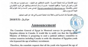 بشرى جميله حملتها رسالة من القنصلية المصرية العامة بمونتريال حصل ”الأهرام الكندي“ علي نسخة منها، لأبناء المصريين المقيمين بالخارج. الهدية والبشري الجميلة جاءت من القوات المسلحة المصرية هذه المرة لحل مشكلات معاملات التجنيد لأبناء المصريين بالخارج. وجاءت رسالة القنصلية العامة كالتالي: تهدي القنصلية العامة لجمهورية مصر العربية في مونتريال أطيب التحيات لأبناء …
