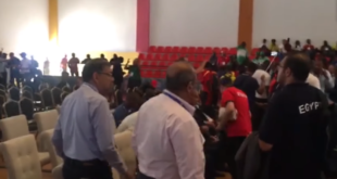 وفد الكونغو يعتدي على لجنة التحكيم بعد خسارة لاعبه بمنافسات الملاكمة في دورة الألعاب الأفريقية المقامة بالمغرب وفوز الملاكم المصري محمد عرابي 5-0 وحصوله على الميدالية الذهبية