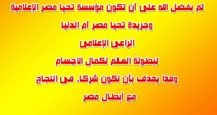 متابعة جورجيت شرقاوي أعلن ” عمرو سراج ” رئيس مجلس إدارة مؤسسة ” تحيا مصر ” الإعلامية أنه من المقرر أن تشارك المؤسسة في احتفالية كبري تقالم بمناسبة مشاركة مصر في بطولة العالم لكمال الاجسام المقرر عقدها في ألمانيا ، بصفتها الراعي الإعلامي الرسمي للبطولة . حيث تقدم المؤسسة عددا …