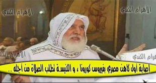 متابعة / أمل فرج أكد مصدر كنسى إصابة القمص بيشوى ناروز ـ كاهن كنيسة السيدة العذراء مريم ـ بقنا بفيروس كورونا ونقله لمستشفى العزل بإسنا ، وطالبت الكنيسة جموع المسيحيين برفع الصلوات لأجله ليتتم الرب له الشفاء